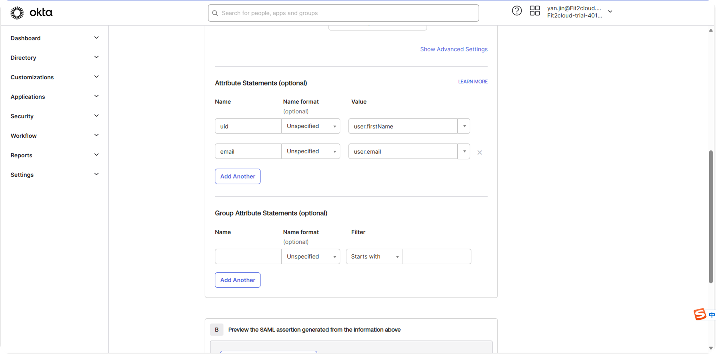 6. 设置登录 Okta的用户名。
