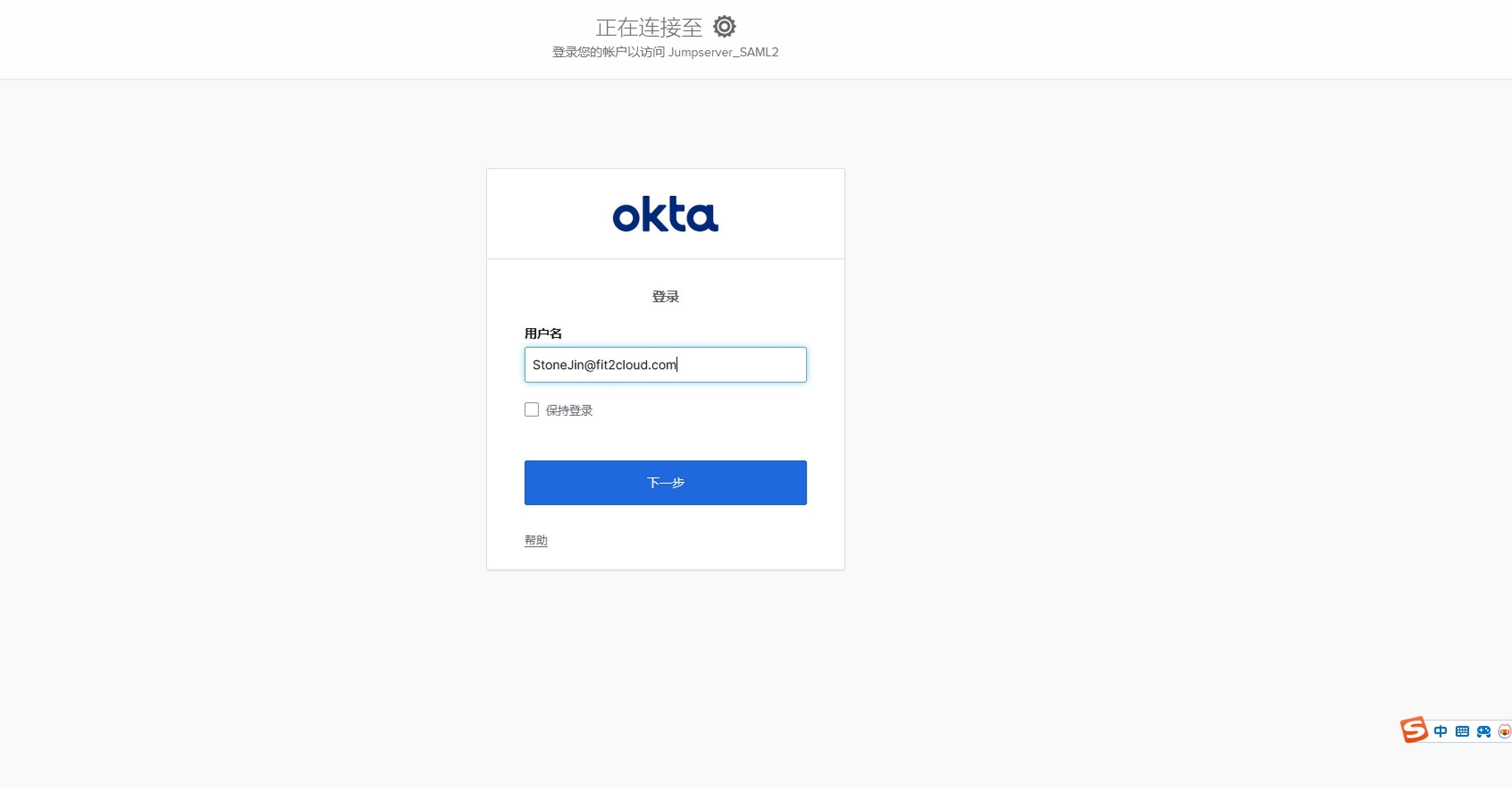 9. 输入登录 Okta 的账号(创建用户时创建的).