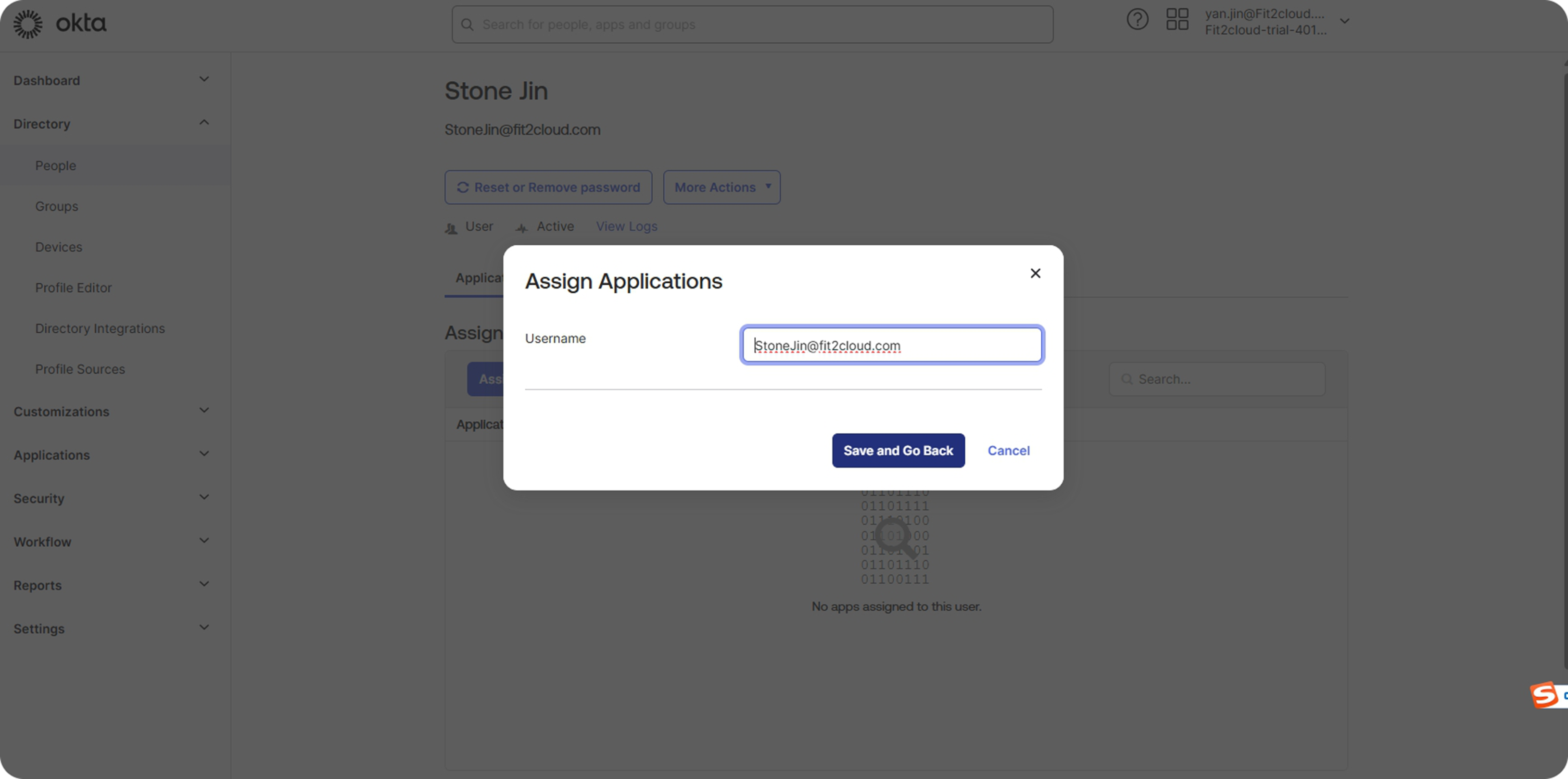 测试验证:Okta 端添加用户
