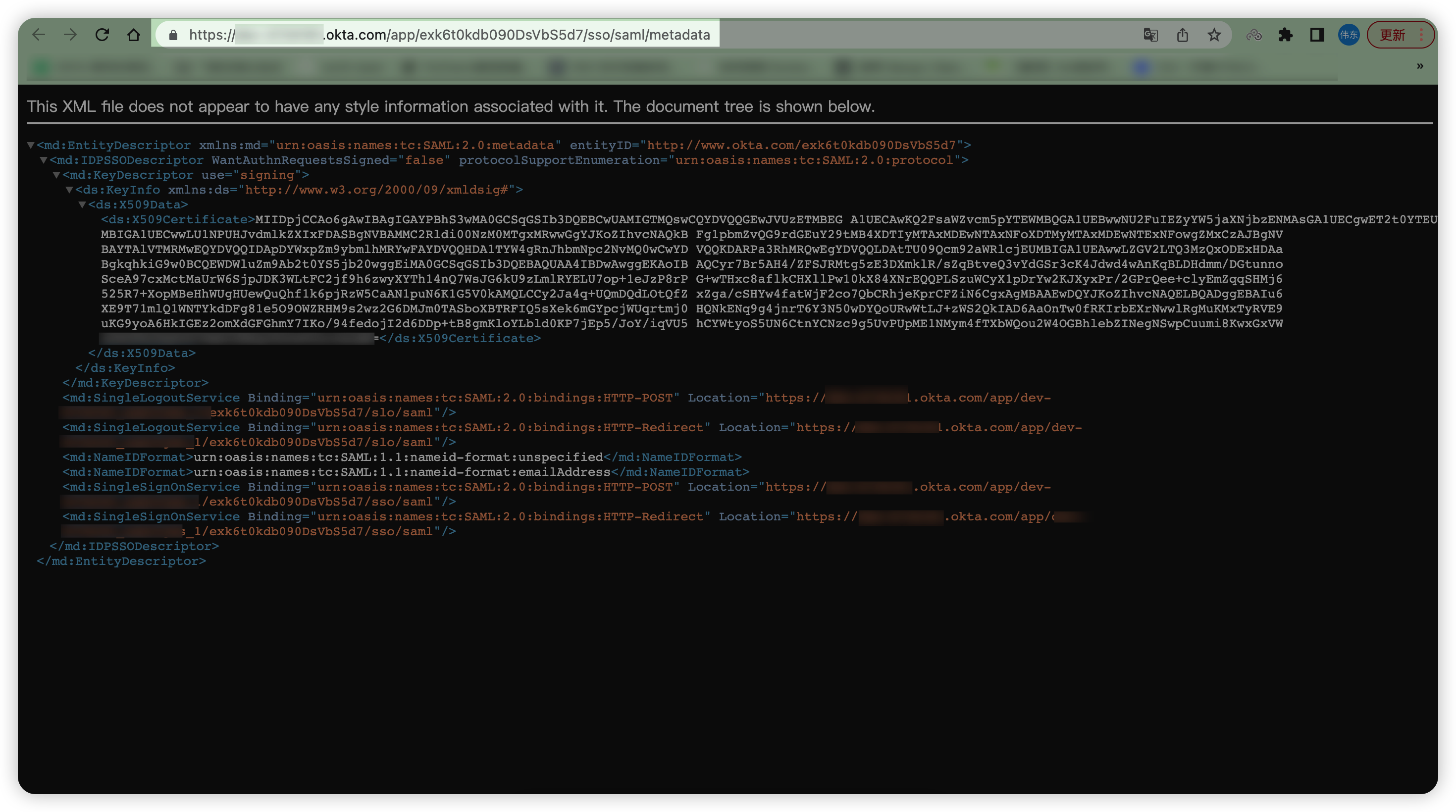 5. 配置相应SAML信息;