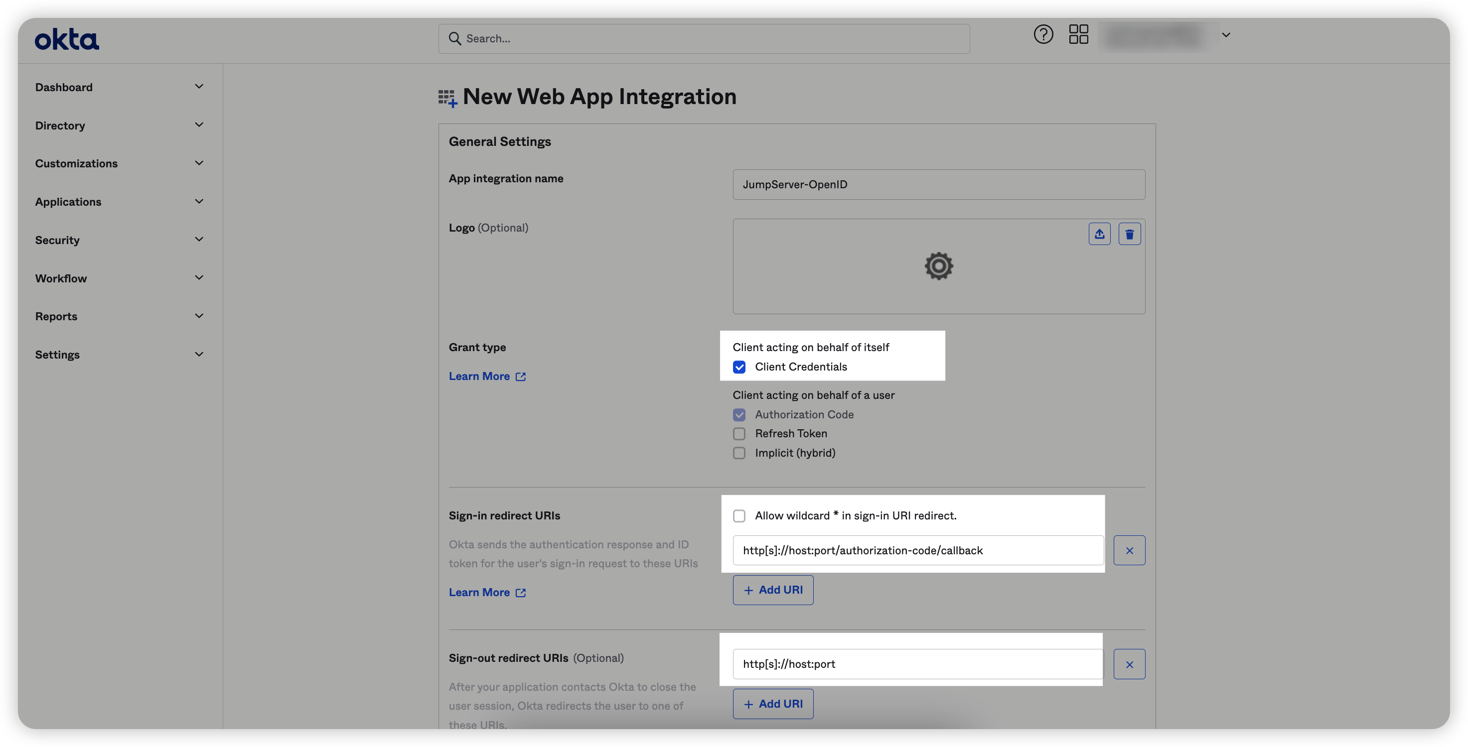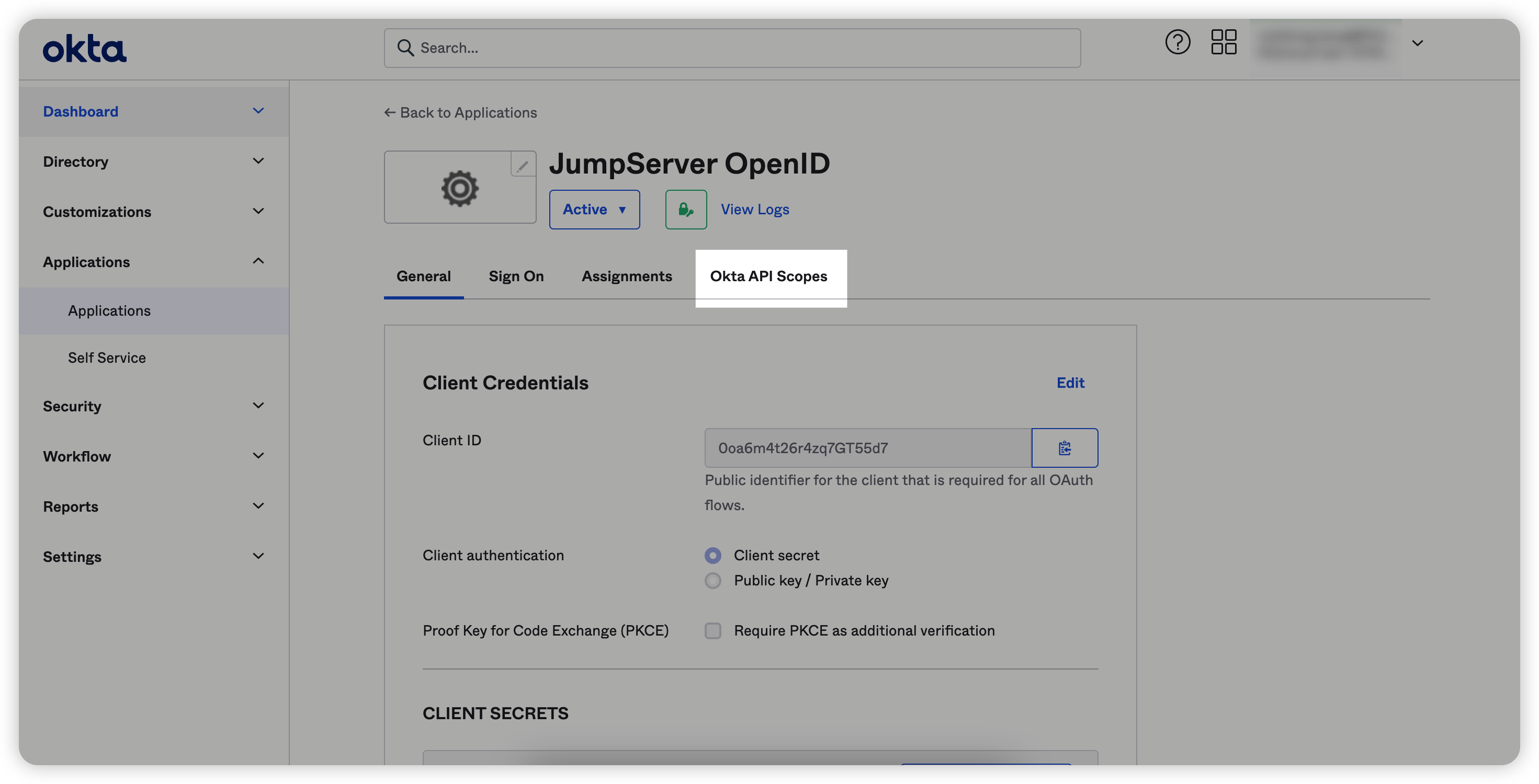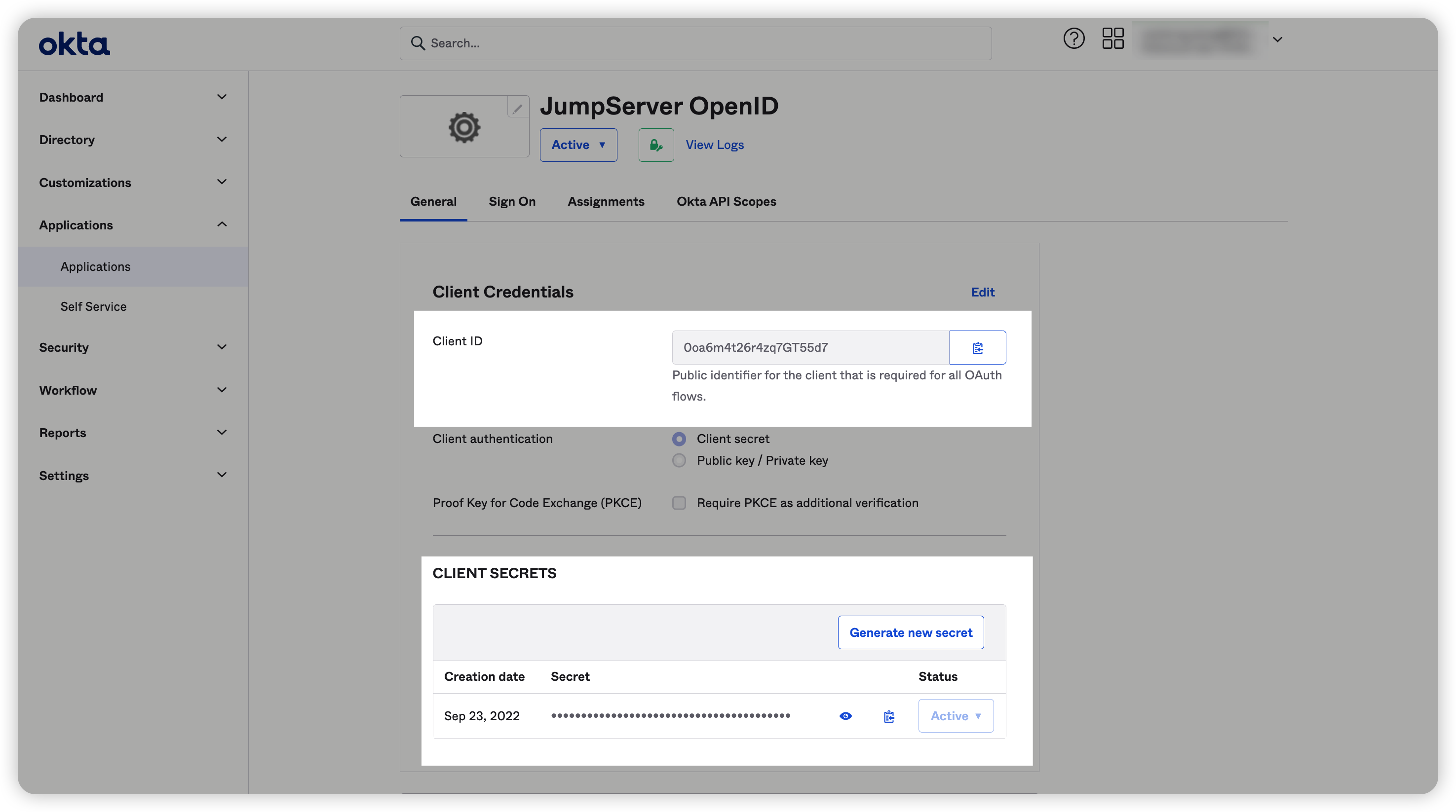 2. 在Okta端配置客户端ID(Client ID)及客户端密钥(Client Secret);