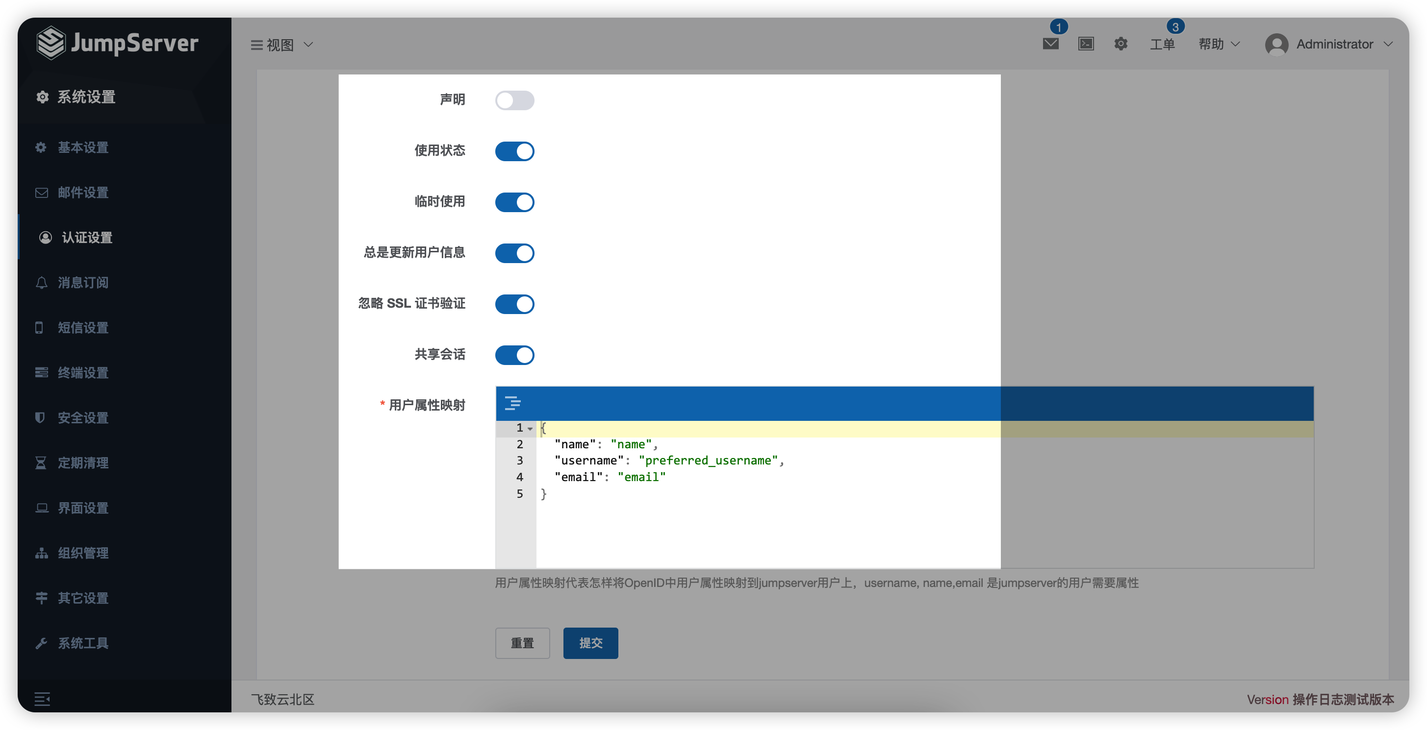 3. 按照下图设置相应信息,即可完成JumpServer端的对接设置。