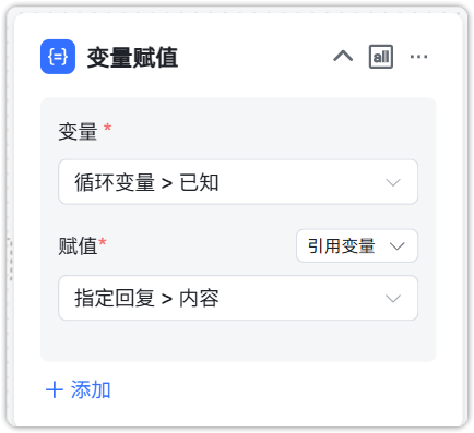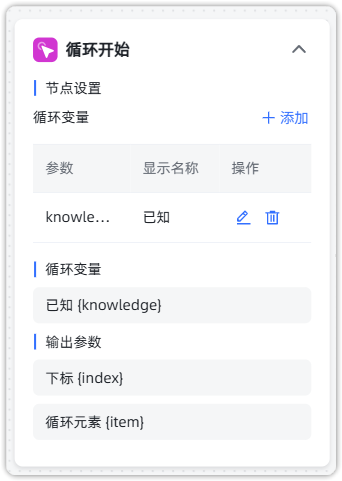 将循环变量 knowledge 赋值为指定回复的结果,方便外部工作流引用变量。