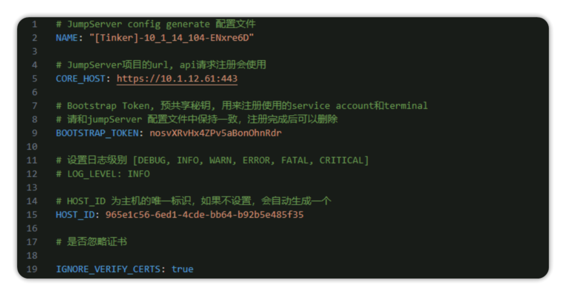 2.打开 Tinker 配置文件手动修改相关参数: BOOTSTRAP_TOKEN: 需要和配置文件里面的一致 ,NAME: 填写 Tinker 组件的名称字段。