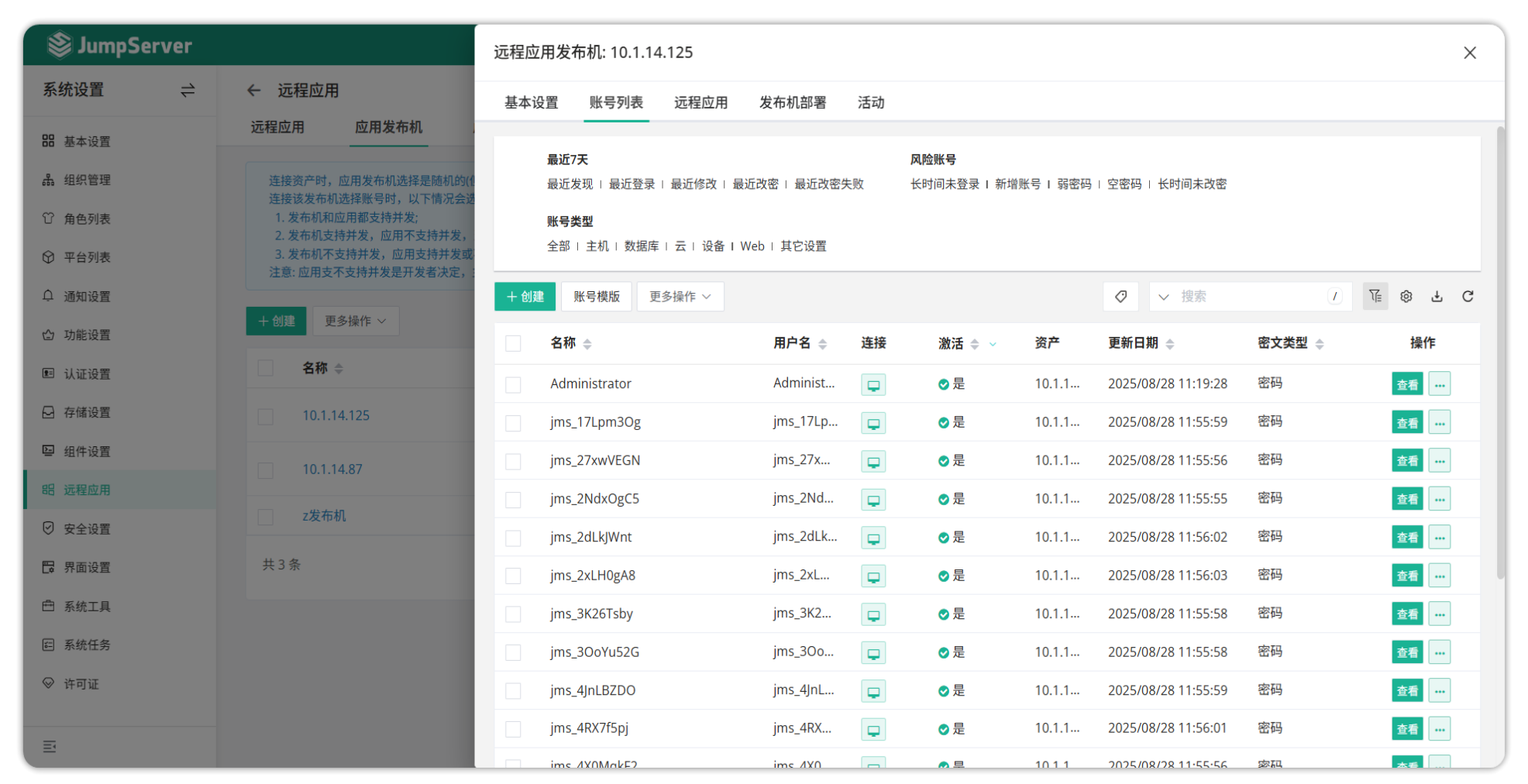 删除 Windows 远程应用发布机上的 JumpServer 上的账号,手动在应用发布机上创建 ”jms_“ 开头的用户,并添加到应用发布机账号列表中。新建系统后需要重启 Tinker 服务( Windows 服务器上),用以加载远程应用账户列表中的账号列表。