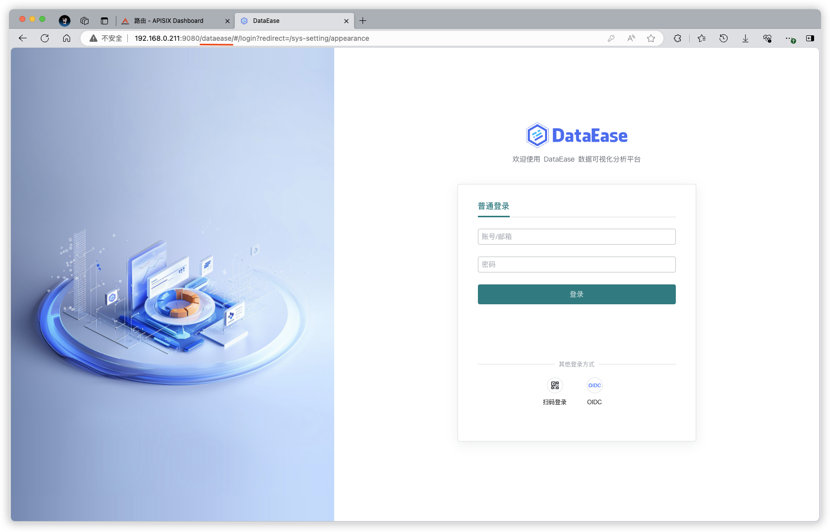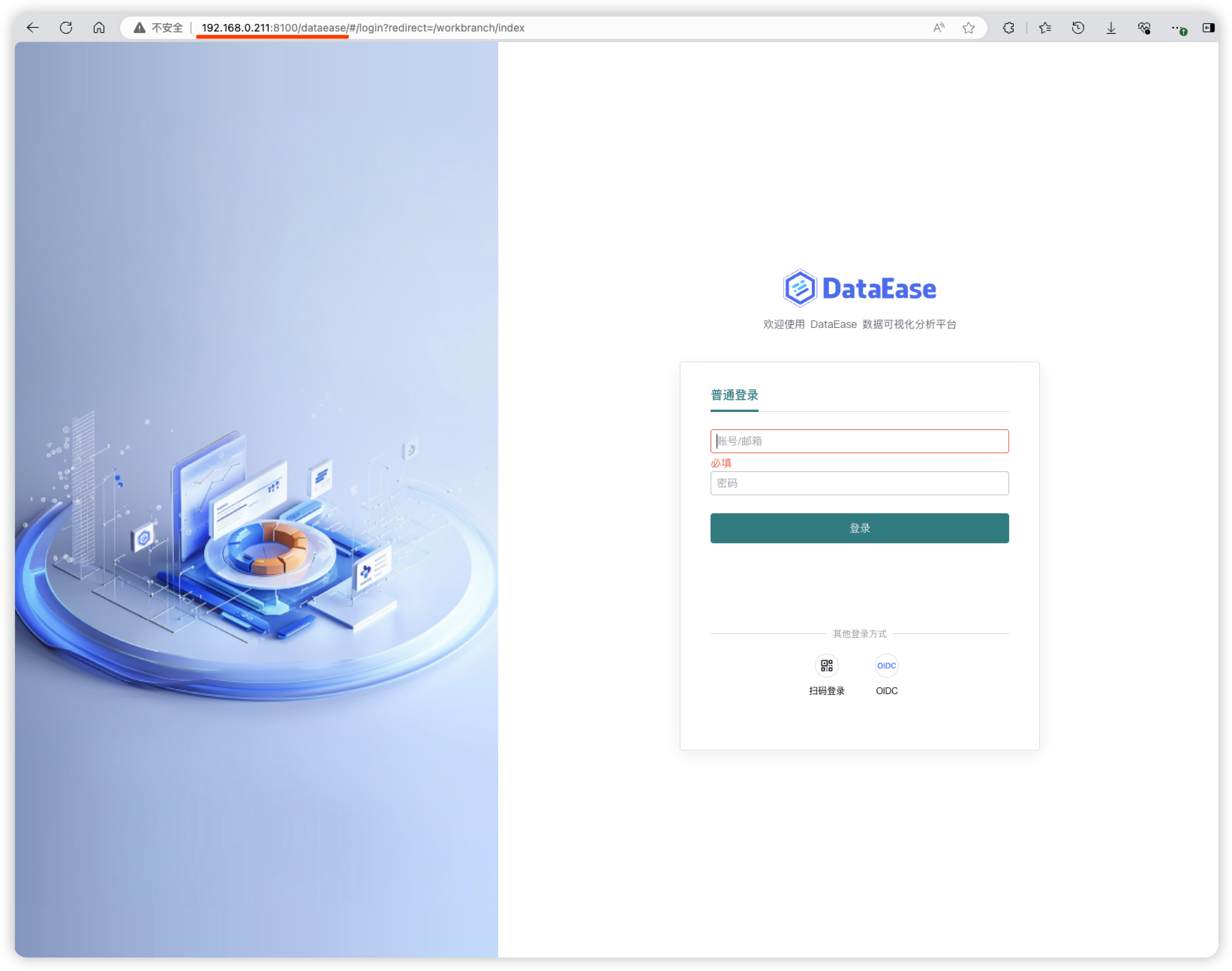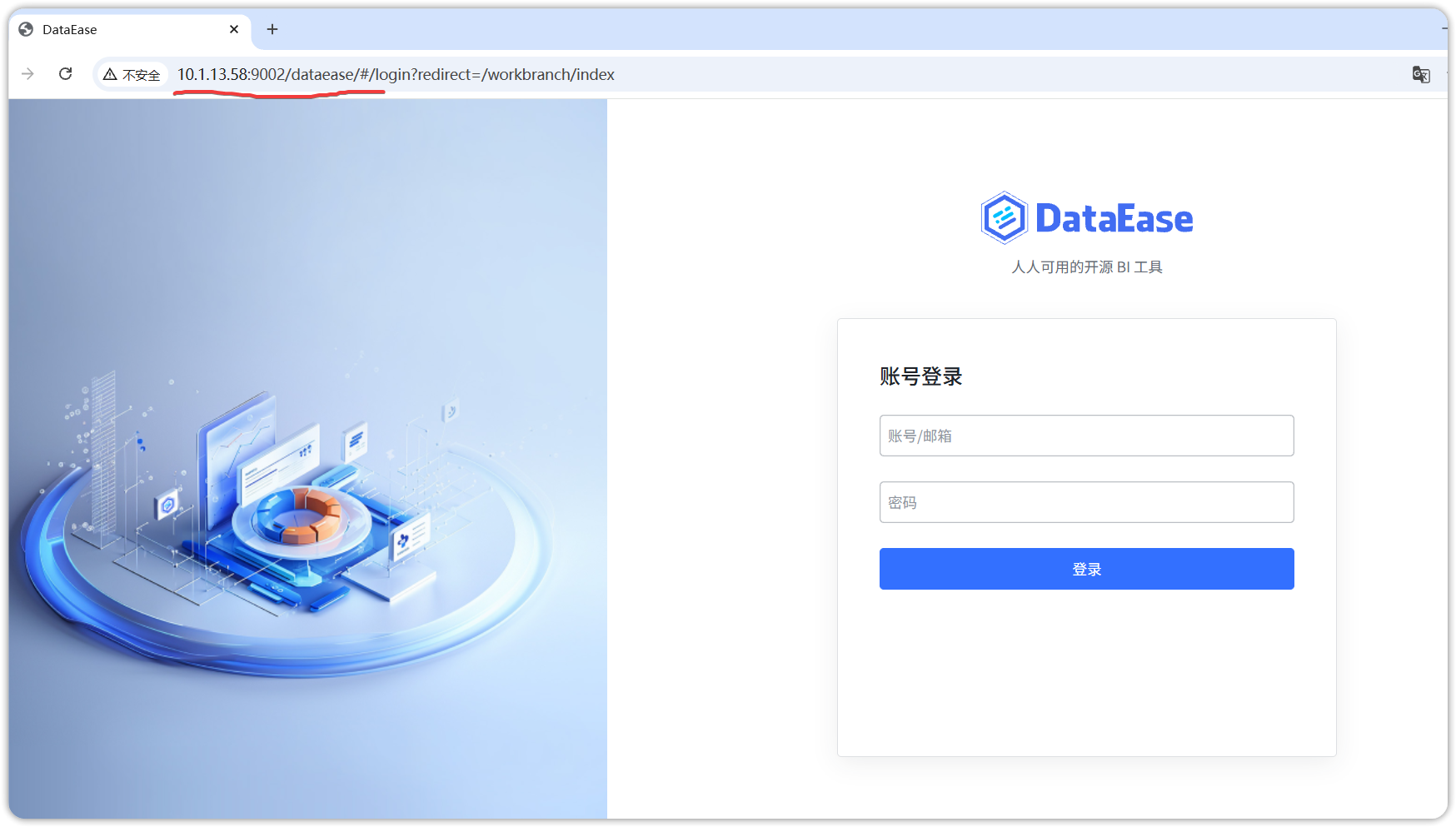 docker exec <容器名称或ID> nginx -s reload3)使用 http://<服务器IP>:<nginx映射端口>/dataease/ 即可访问