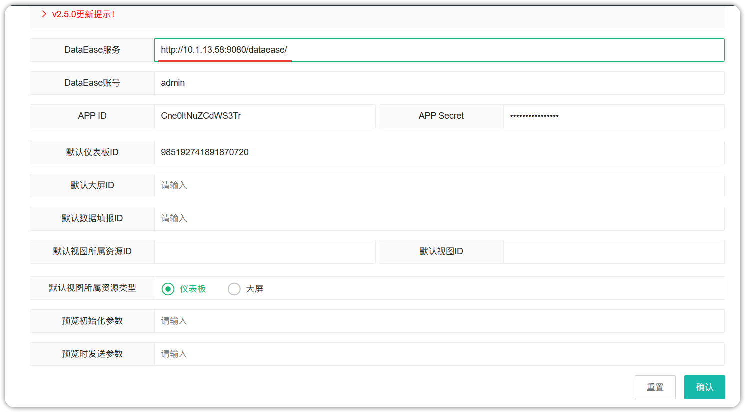 2.10.0 及以上版本和开源版本请跳过此步骤,如果您的版本较低,也可以升级到最新版本,升级后可省略此步骤,如需升级,可参考:DataEase v2 企业版安装步骤