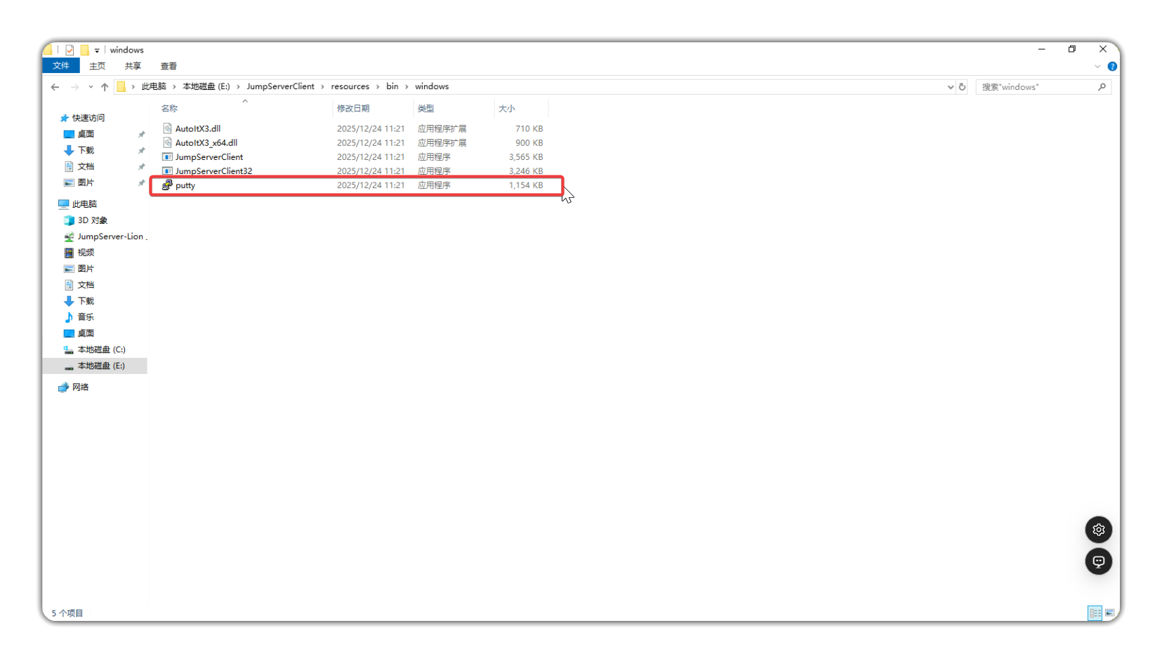 JumpServer 支持通过 Microsoft Remote Desktop 以 RDP 协议连接 Windows 资产,核心是通过授权转发 + 客户端调用的方式,让本地 MSTSC 直接对接目标资产,无需手动输入账号密码,在安装的客户端目录文件中可以看到 putty 软件,说明该方式默认使用的是 putty 拉起本地远程桌面,从而实现本地直连。