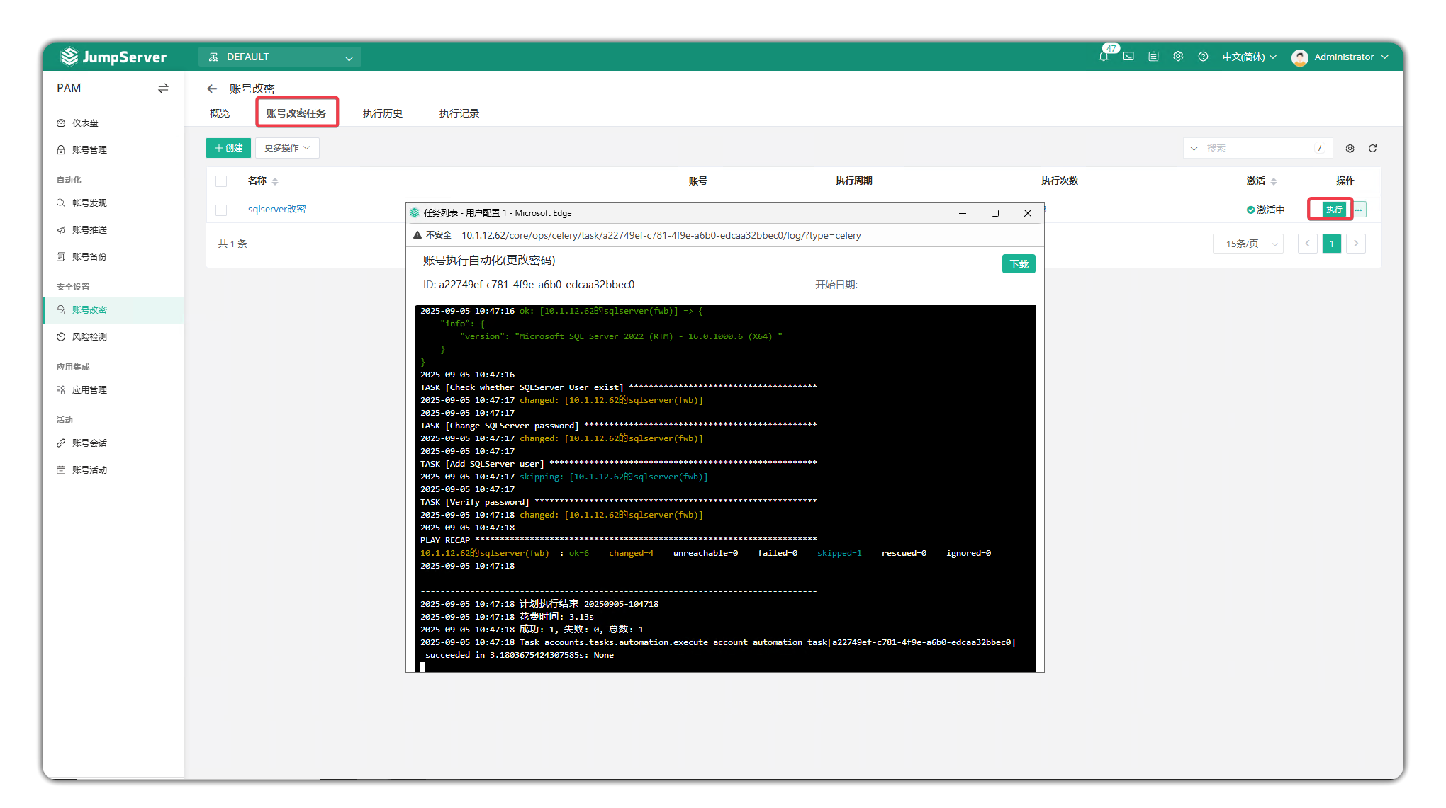 4. 执行改密任务: