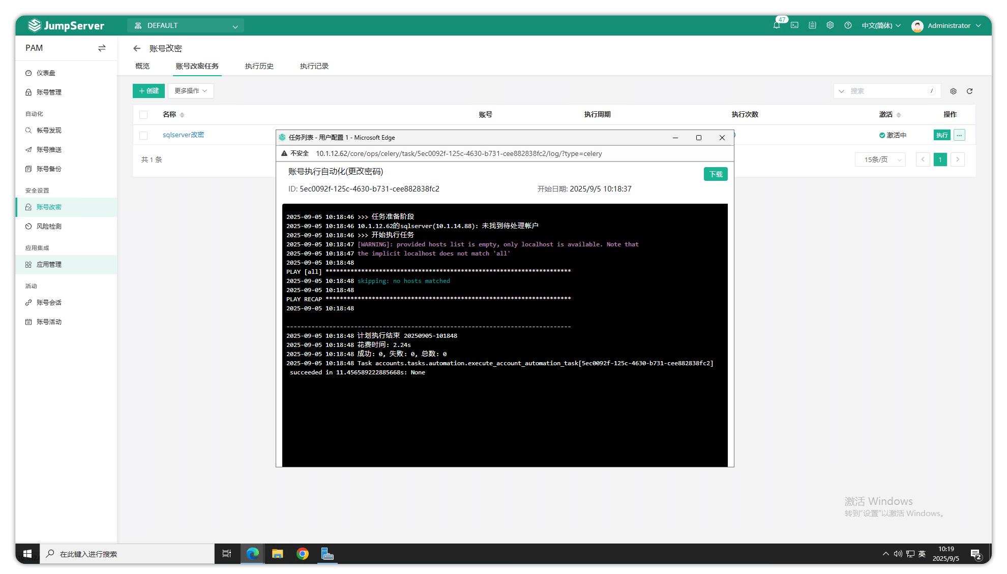 在“账号改密任务”页面,点击