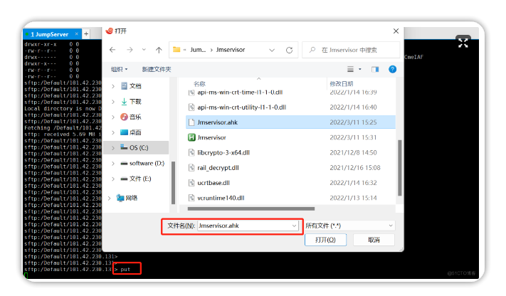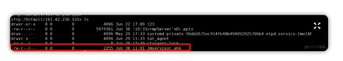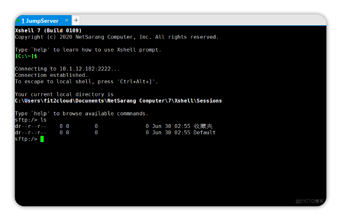 1.通过 sftp -p2222 JMS用户名@JMS登录IP 登录 JMS 的 SFTP 页面。