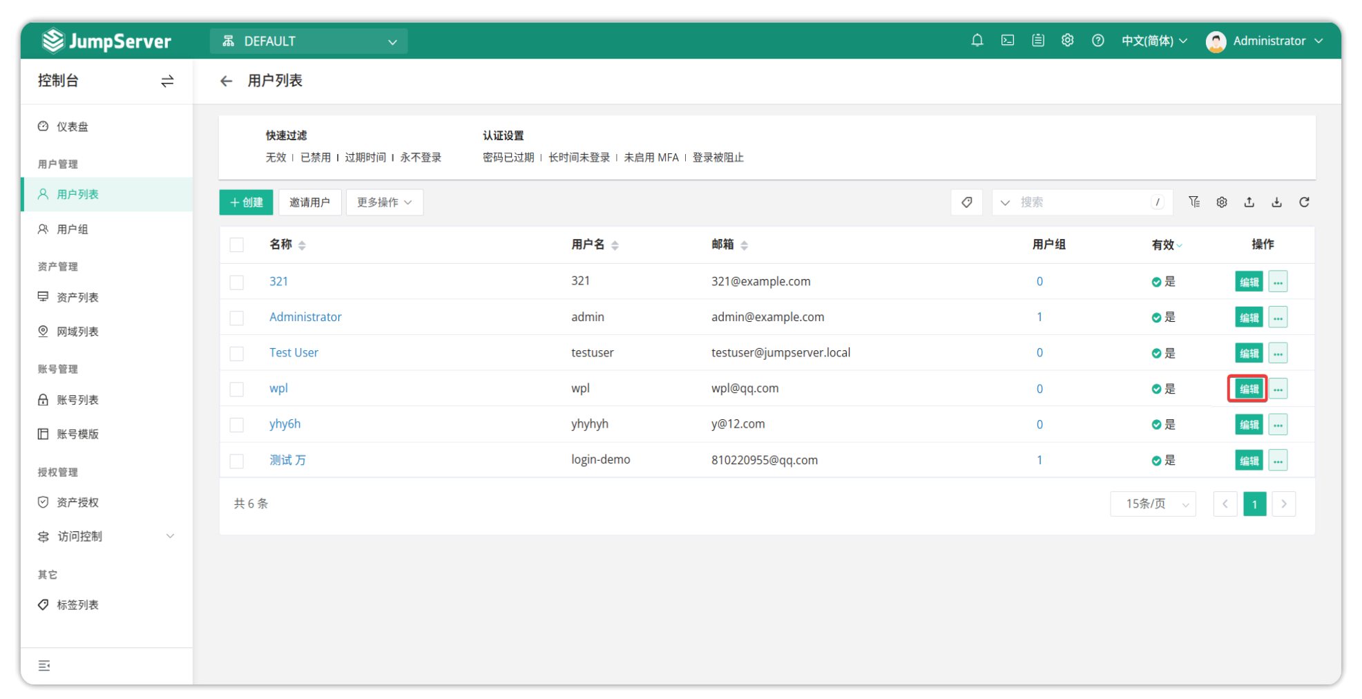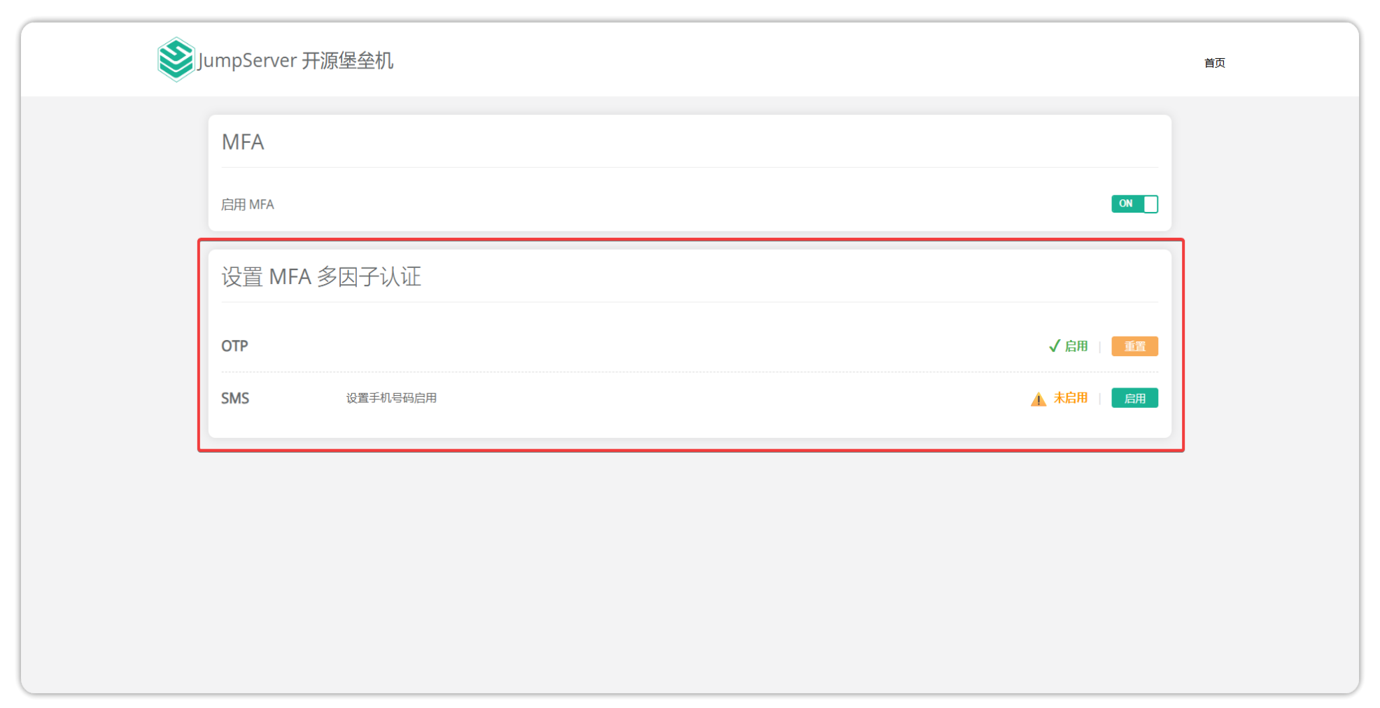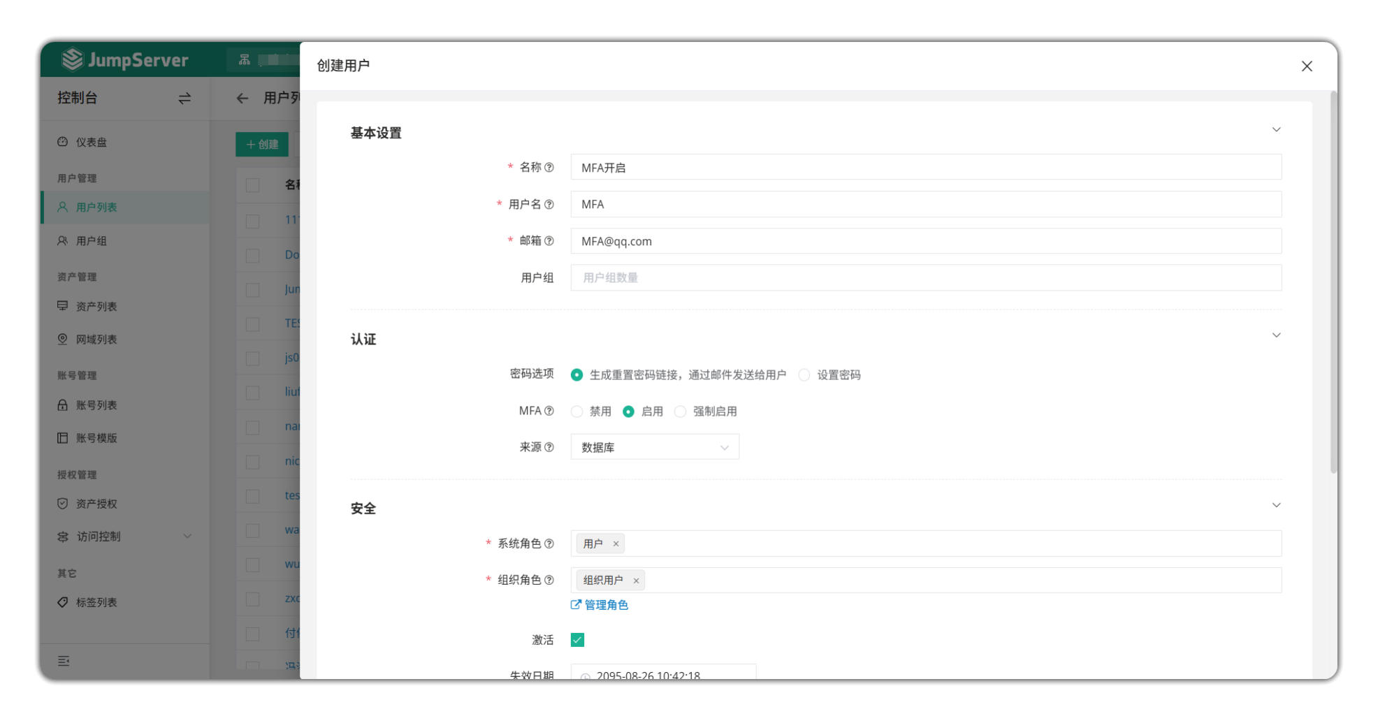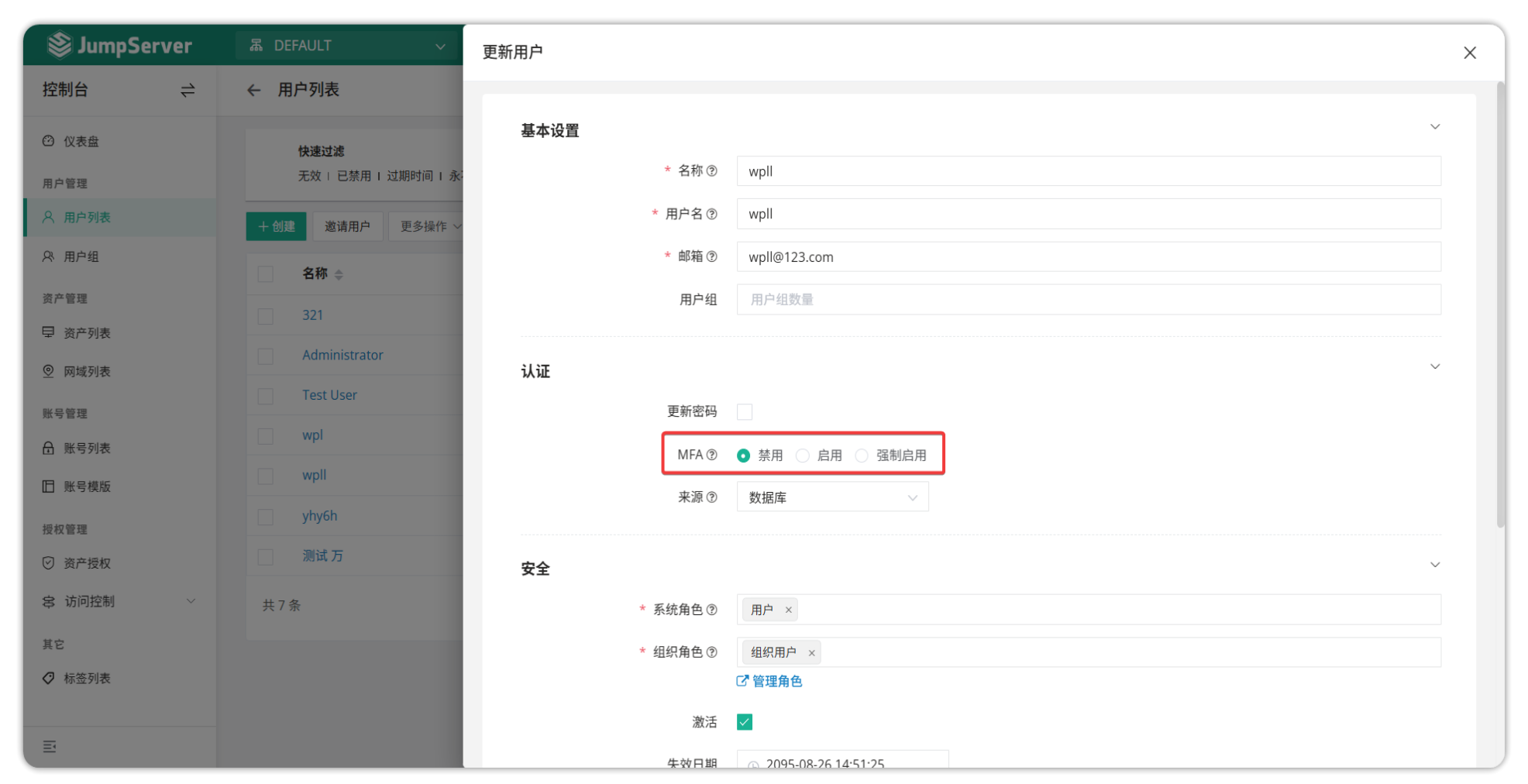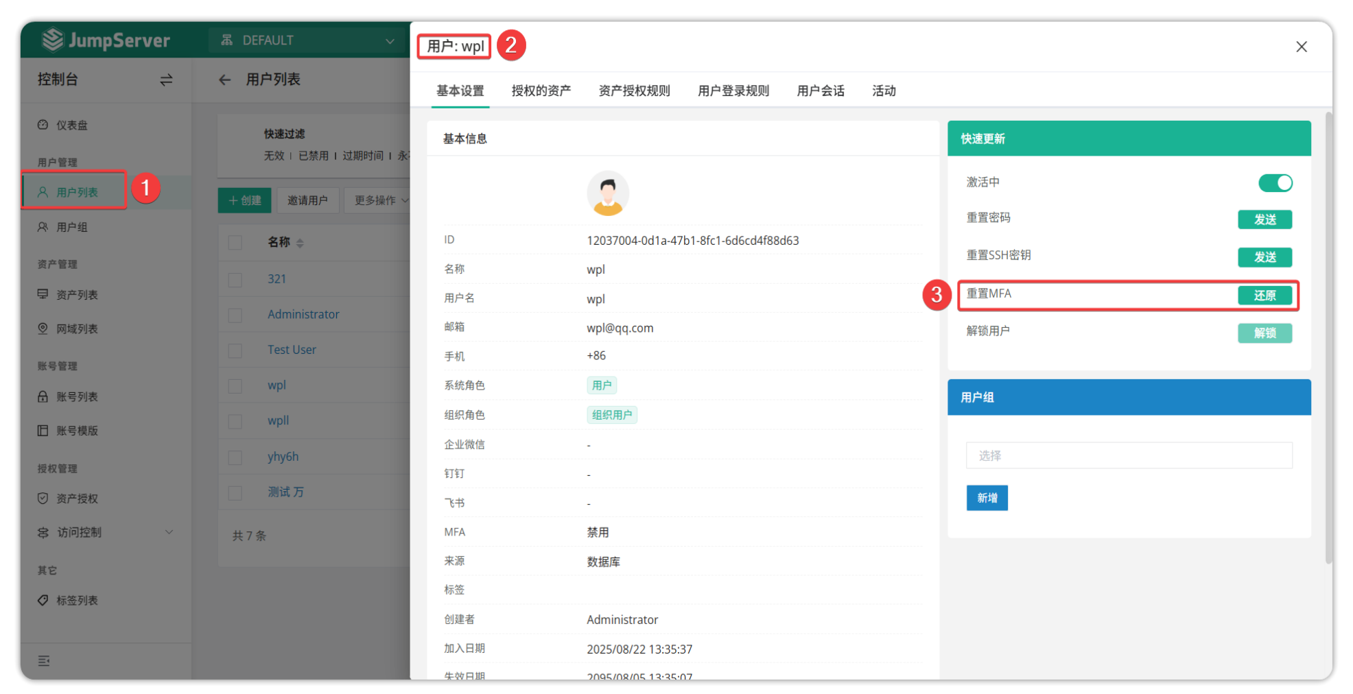 JumpServer 也支持通过堡垒机后台服务器重置用户的 MFA。