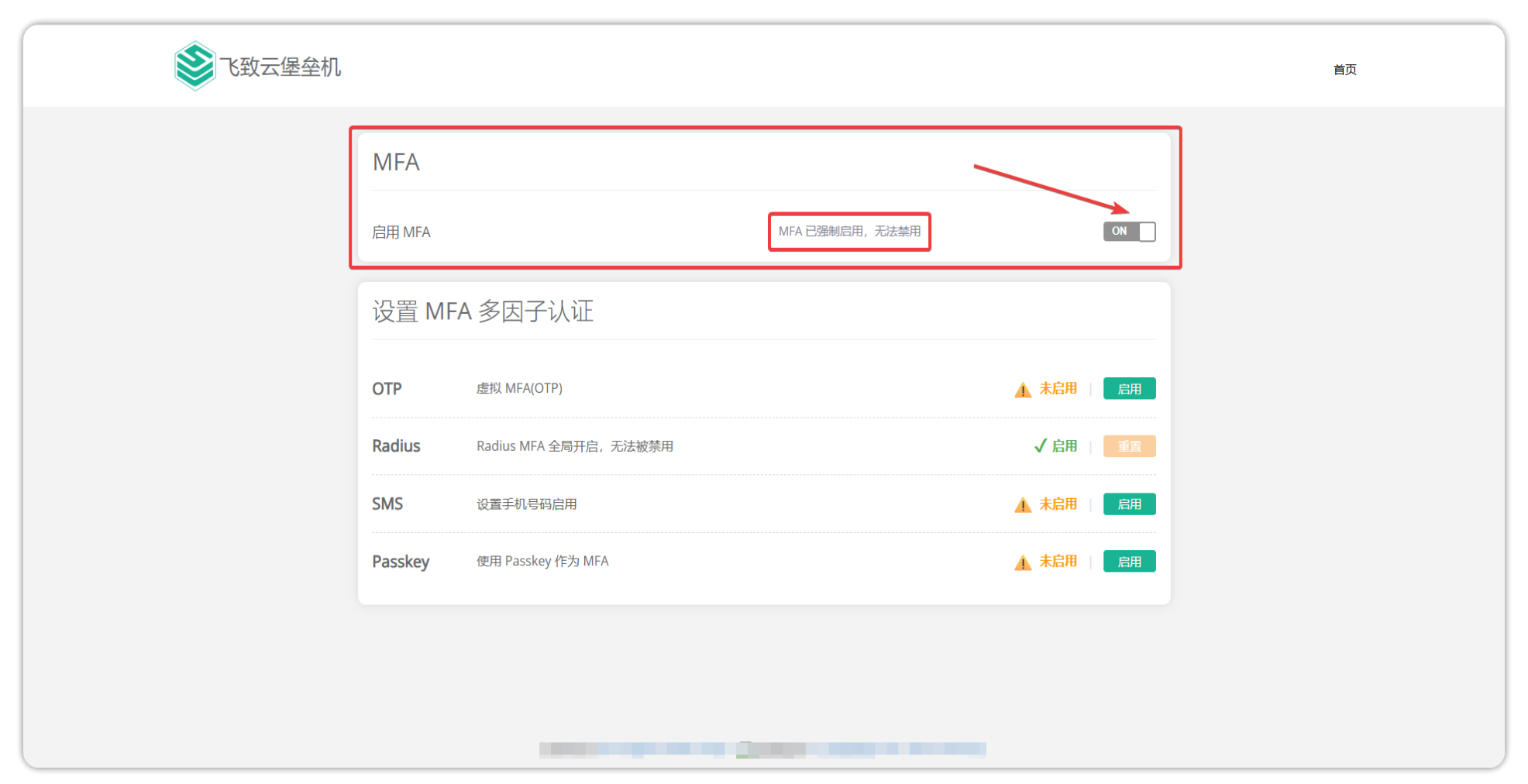 强制启用:启用 MFA,用户不可关闭。