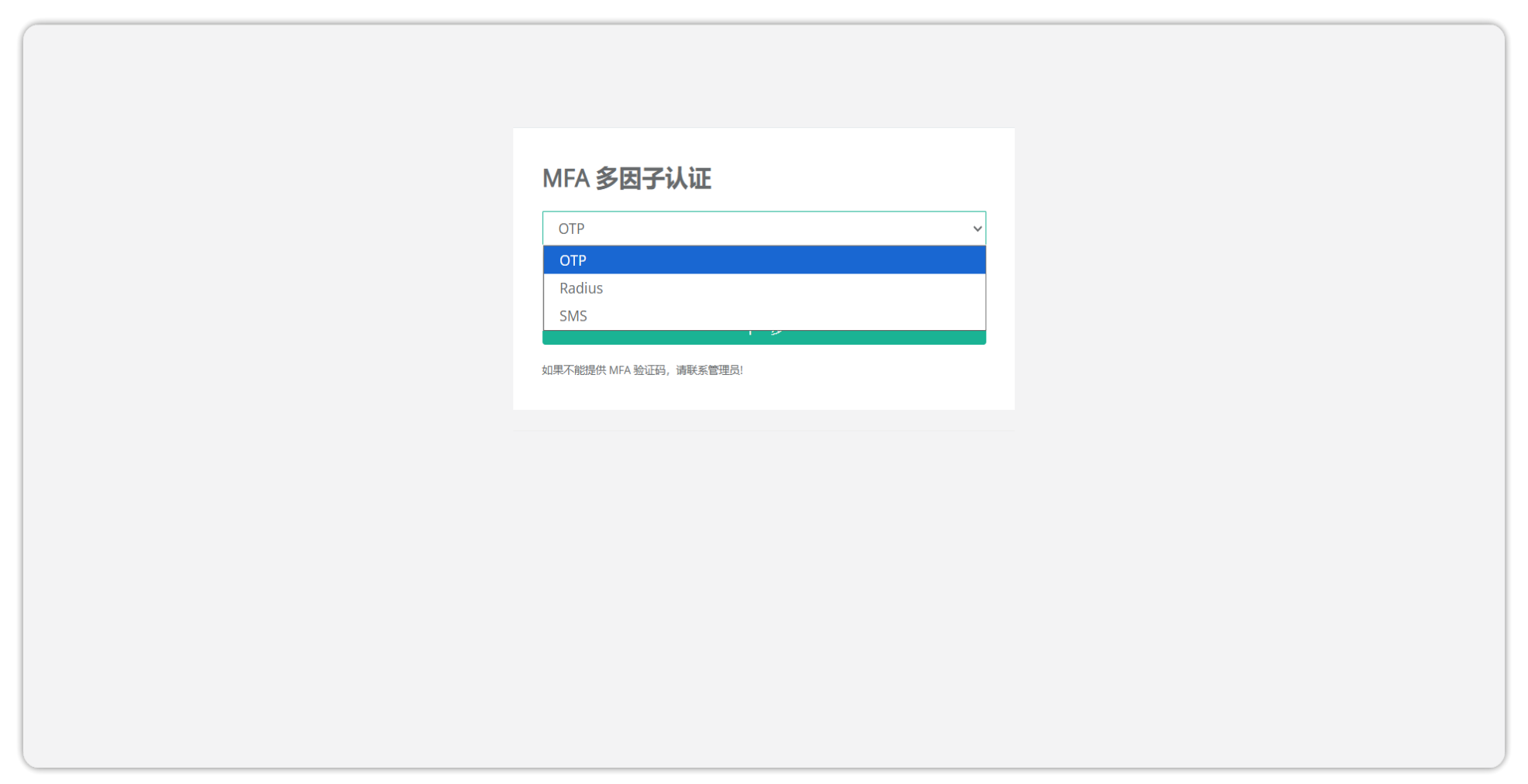 启用双因素认证后,在登陆页面双因子验证界面即可选择 Radius 认证方式。