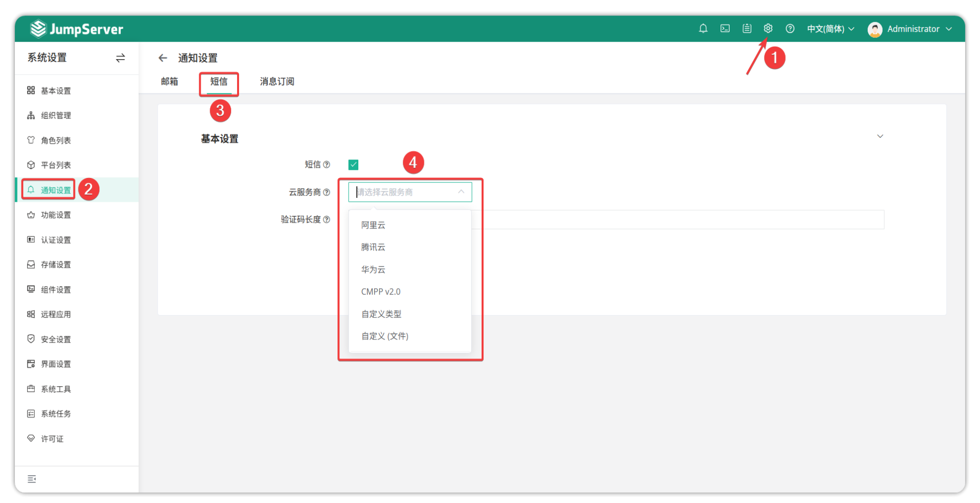 四.管理员开启短信验证