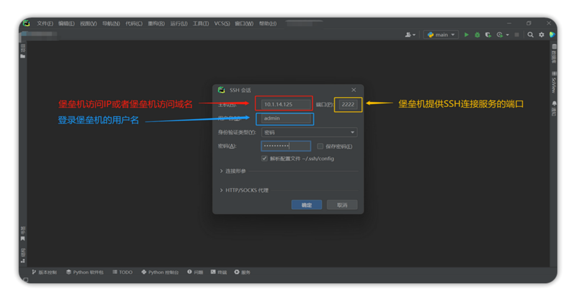三.PyCharm连接堡垒机、资产