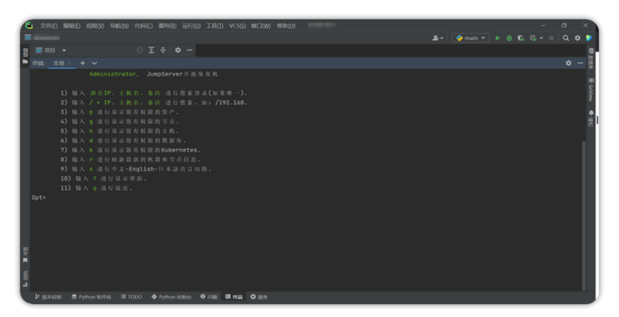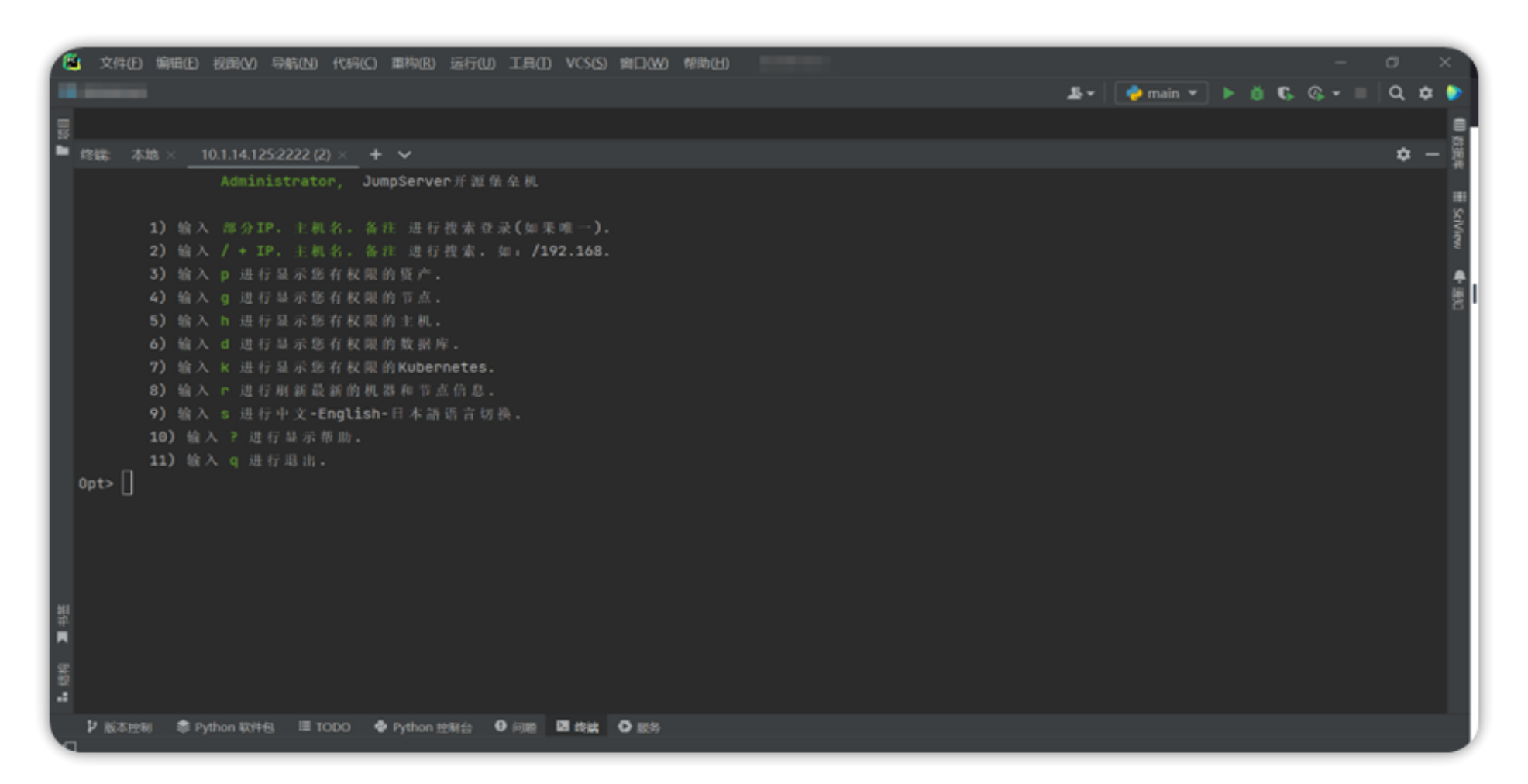 JumpServer 支持通过 Xshell 等工具通过 SSH 协议连接。某些情况下,用户希望使用其他工具连接堡垒机,例如:VScode,PyCharm 等。本篇文章介绍如何使用 PyCharm 连接堡垒机以及堡垒机中的资产。